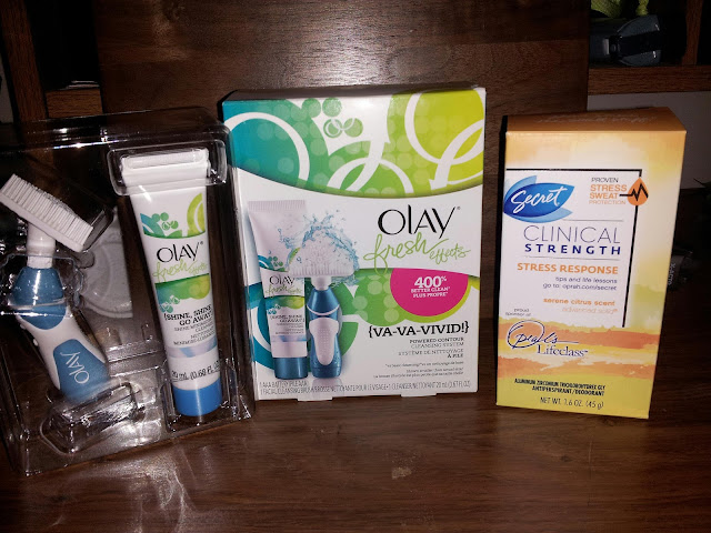 Recently, I was qualified for a Sweetheart Vox Box and I received it in the mail after I got out of the hospital from gallbladder surgery. It was a great gift to come home to! I was so surprised with everything they gave me! Over $20 worth of items! Olay Fresh Effects Cleanser Kit, Not Your Mothers Beach Babe Sea Salt Spray, Secret Stress Response Deodorant, and a Skinny Girl To Go Bar!